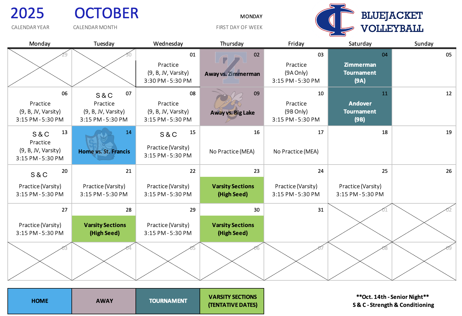 CI Bluejackets Volleyball Calendar